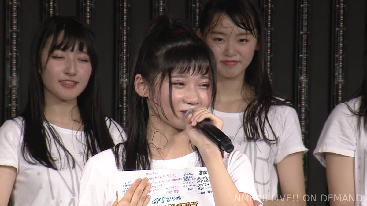 「本日NMB48劇場に足を運んでくださった皆さん、モニター観覧、DMM配信を見てくださっている皆さん、スタッフの皆さんメンバーのみんな、いつも応援してくれる父と母、今日はこんな素敵な誕生日にしてくれてありがとうございます。