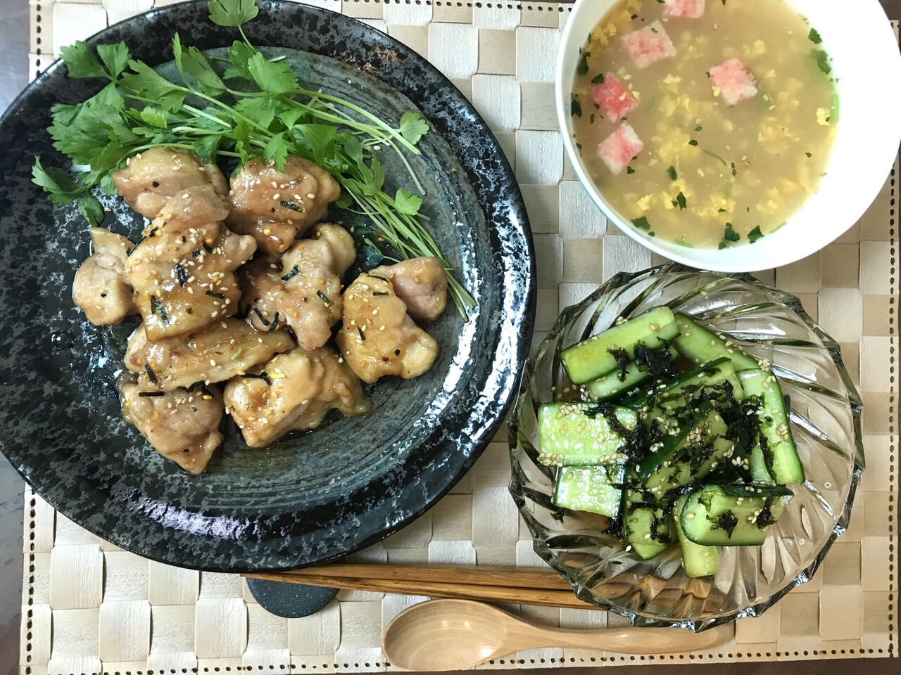 カニ鍋風雑炊も、照り焼きチキンも、きゅうりの中華風も、めちゃくちゃ簡単でおいしかったので、
