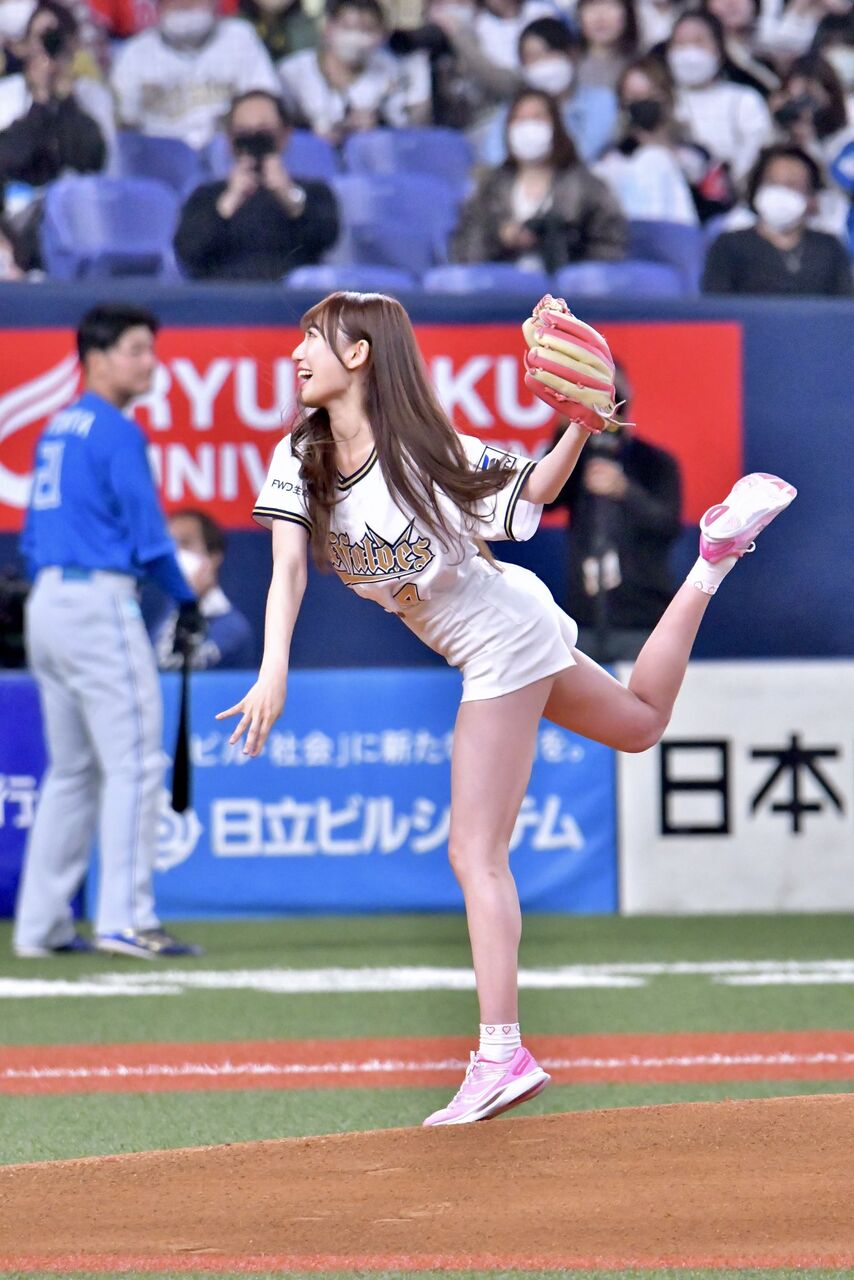 本日4月8日『48の日』に #NMB48 のオリ姫 #原かれん さんが始球式に登板⚾️