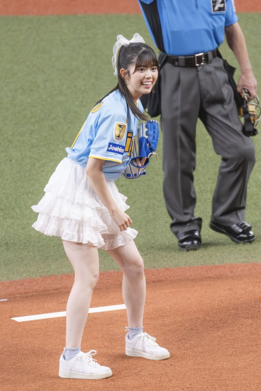 始球式で投球する #NMB48・ #坂下真心 さん⚾✨