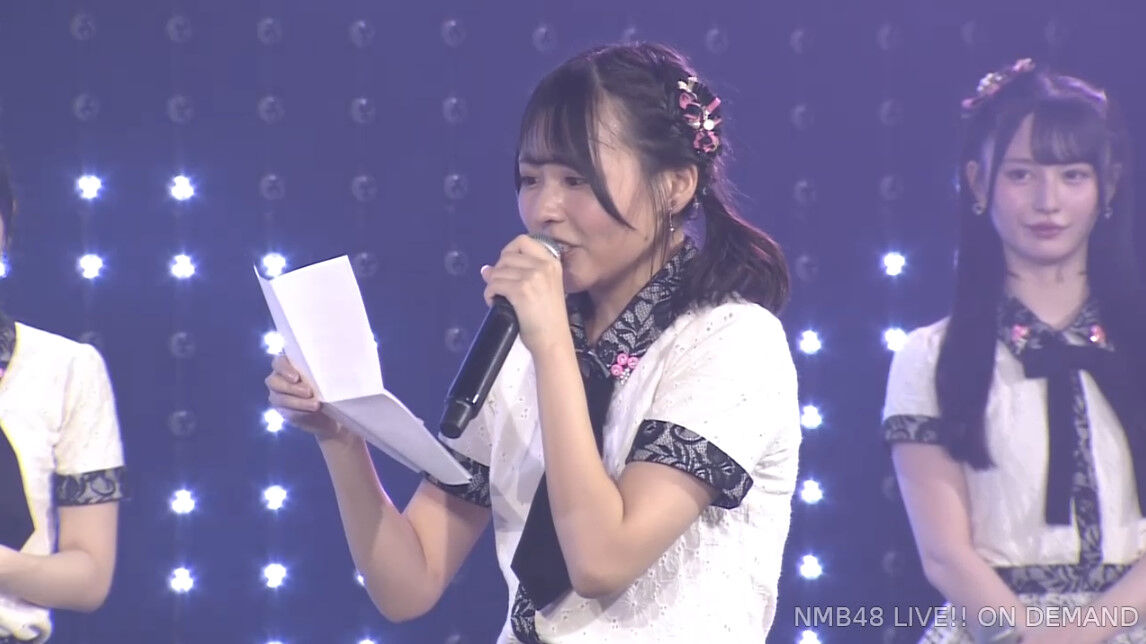 池田典愛ちゃんからの手紙を西由真ちゃんが代読#NMB48 #Mのサイン公演 #西島梨央生誕祭2024 pic.twitter.com/6wjmXwCzZS