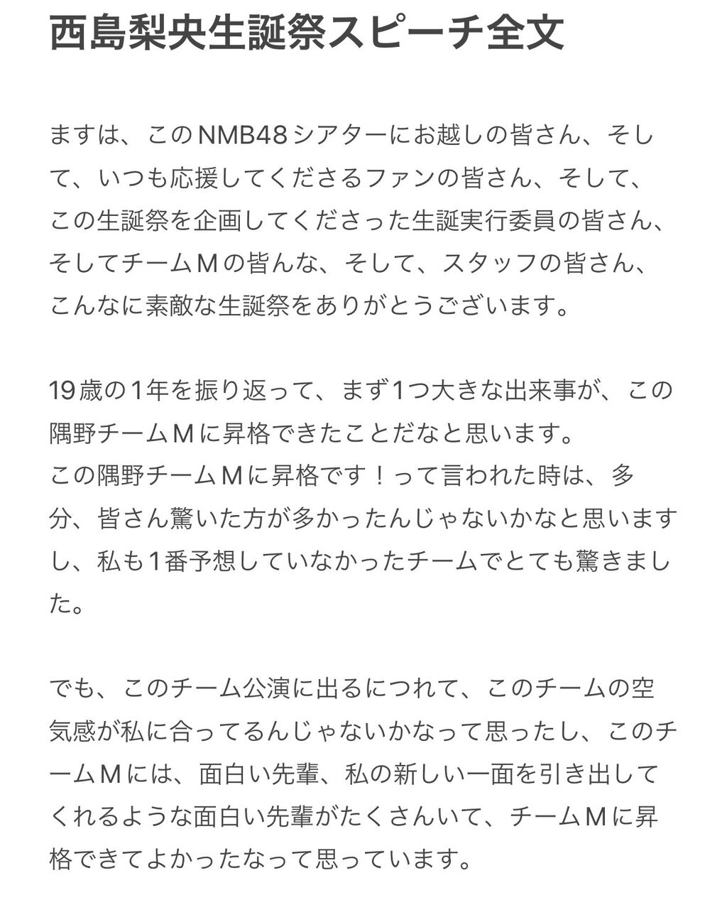 2024.11.27(水) 西島梨央生誕祭スピーチ全文