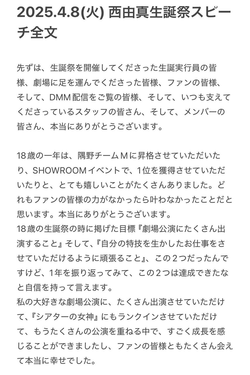 2025.4.8(火) 西由真生誕祭スピーチ全文
