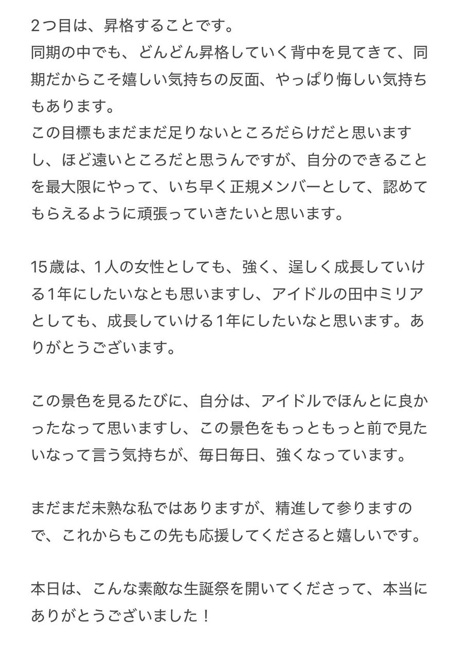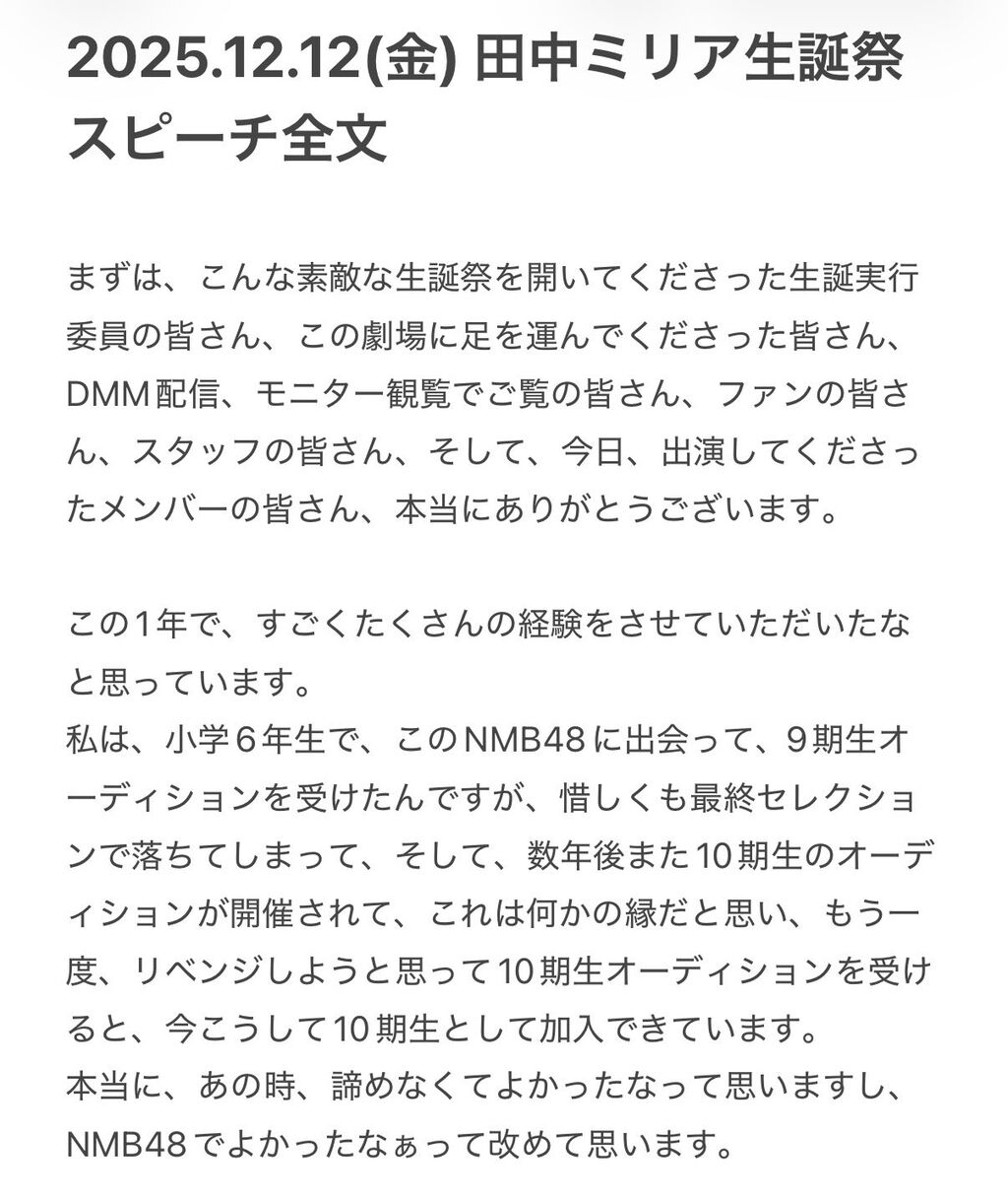 2025.12.12(金) 田中ミリア生誕祭スピーチ全文