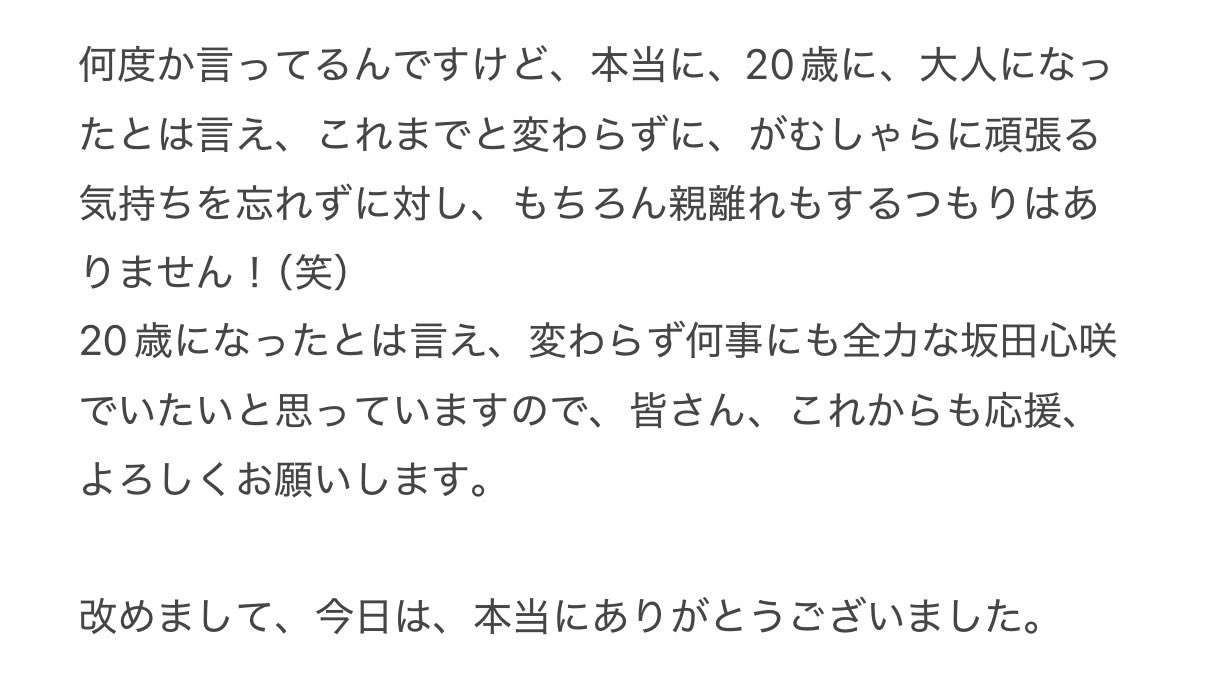 ハタチの坂田心咲ちゃんの一年も楽しみ!