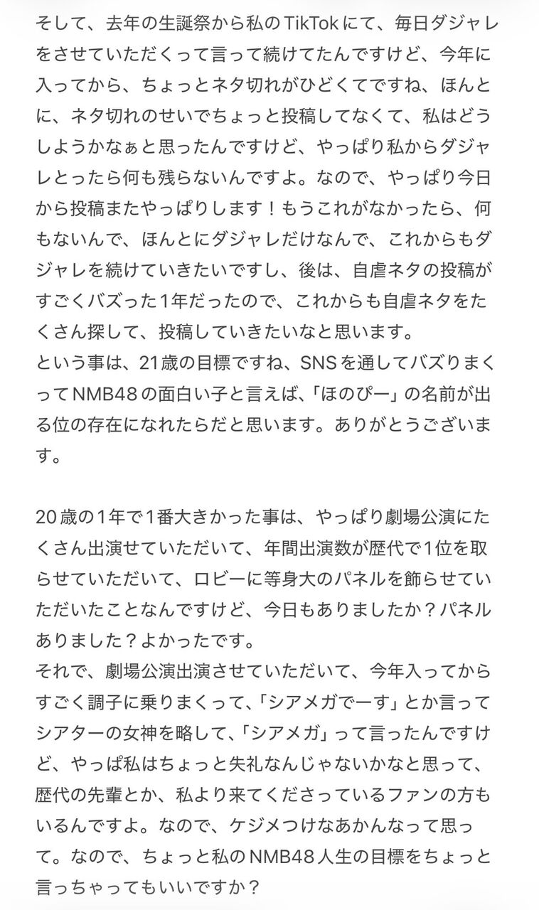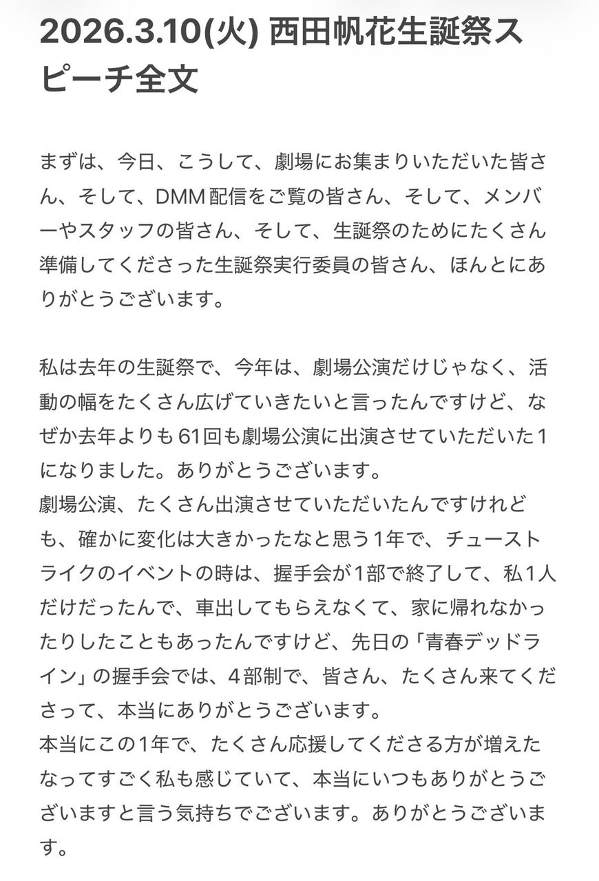 2026.3.10(火) 西田帆花生誕祭スピーチ全文