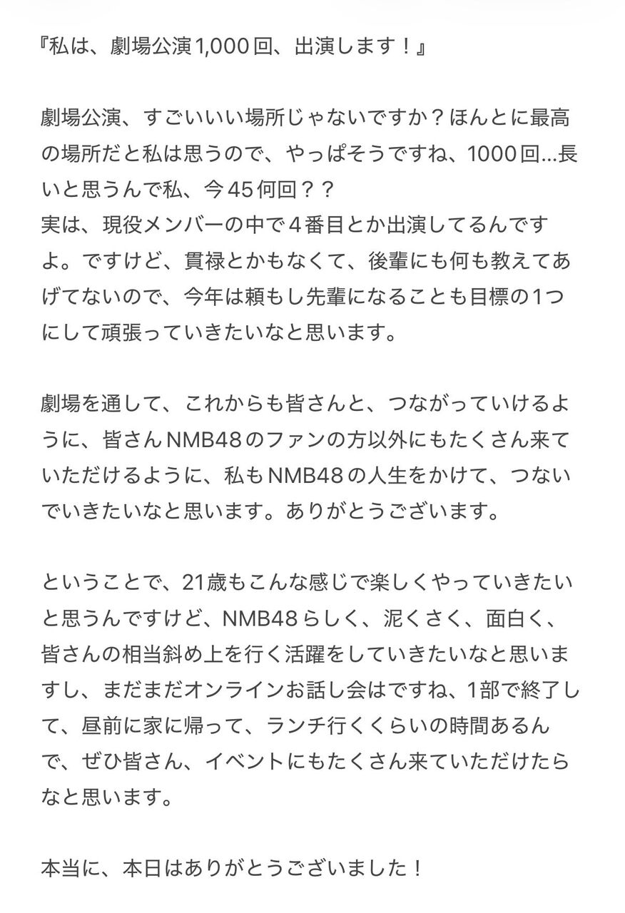 西田帆花「私は、劇場公演1,000回出演を目指します!」#NMB48 #めっちゃ楽舞友公演 #西田帆花生誕祭2026 pic.twitter.com/sXGfmiOD7J